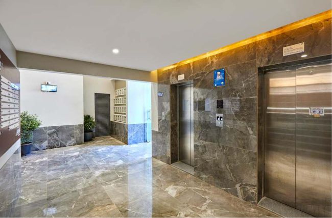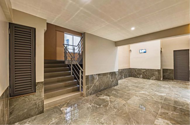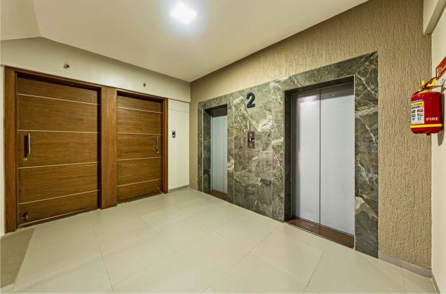 Entire flat will be provided by 600 mm x 600 mm vitrified tiles with 3” high skirting of reputed make. Marble/Granite for treads, risers and landings with decorative MS railing.